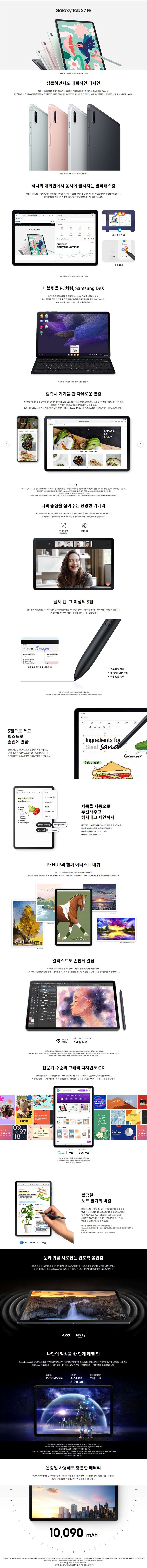 [only 01월17일 5% 추가할인]삼성 갤럭시 탭 S7 FE 64GB WiFi전용 12.4인치 미스틱 실버 S펜 포함 S급
