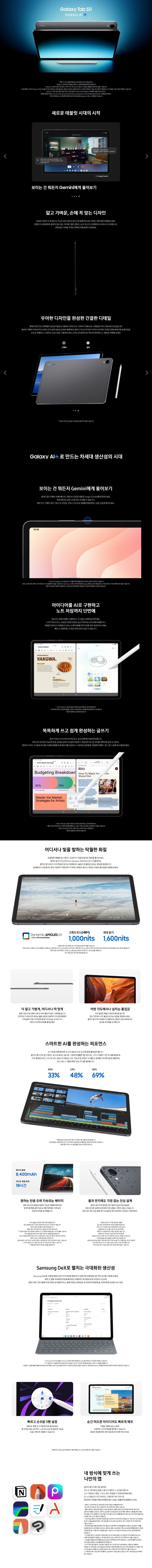 이미지 확대보기삼성 갤럭시 탭 S11 256GB WiFI전용 11인치 그레이 New S펜 포함 풀박스