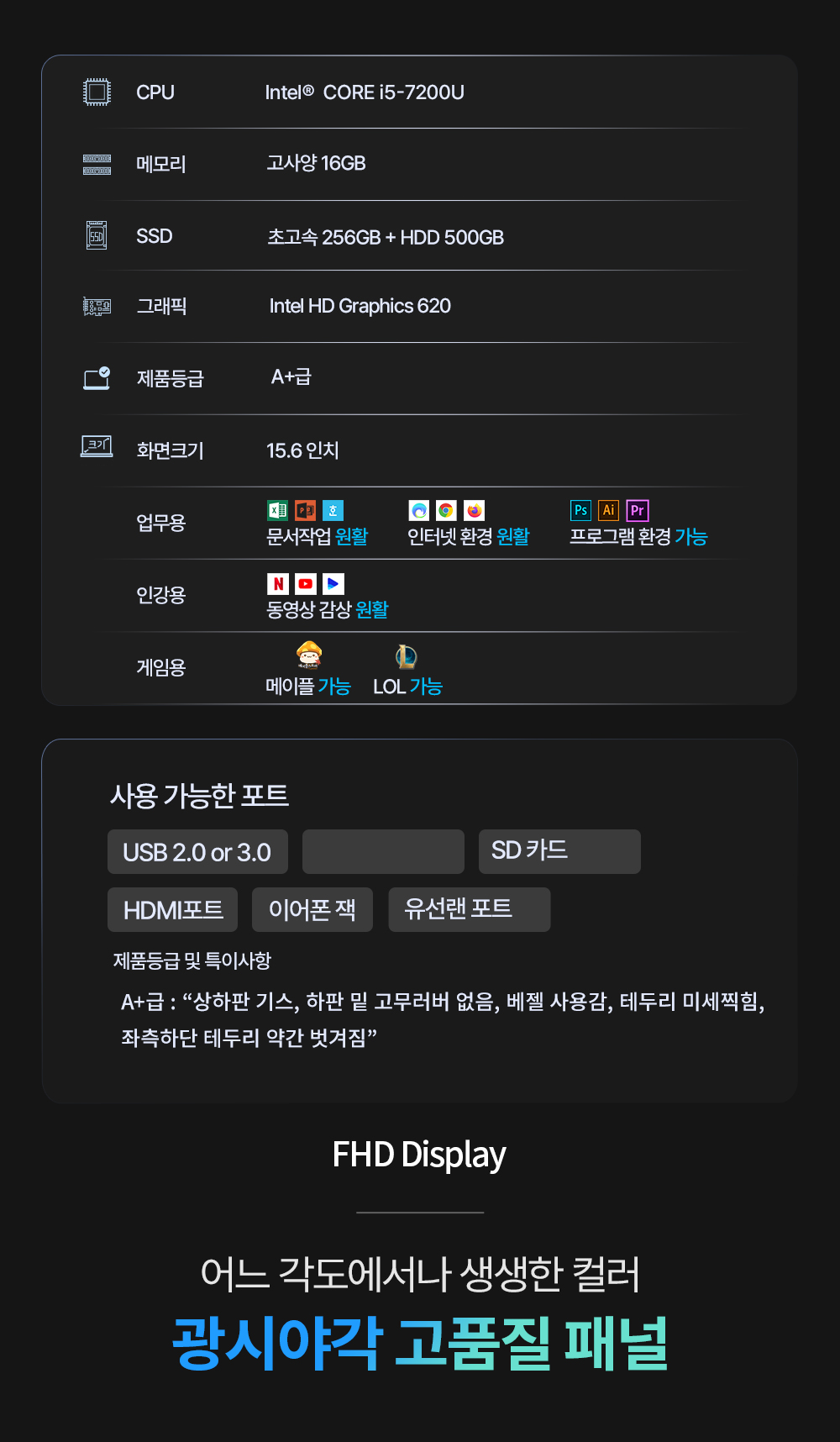 이미지 확대보기리퍼비시 hp i5 CPU RAM 16GB 756GB 15.6인치 리퍼 노트북