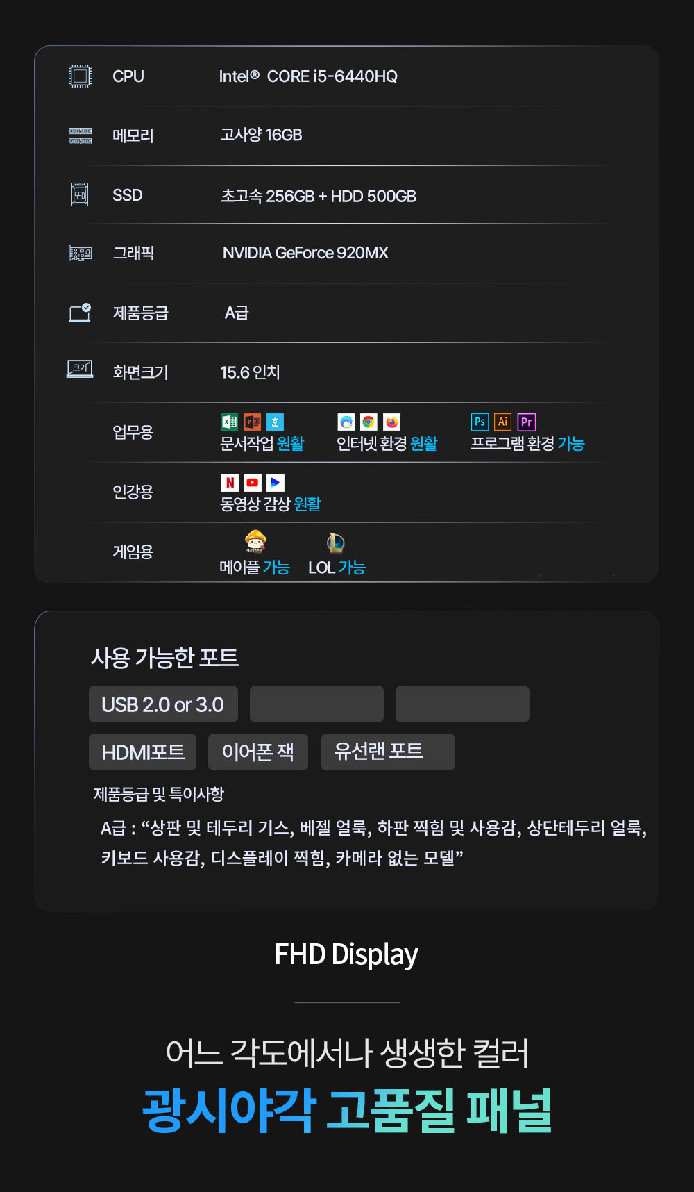 • 리퍼비시 삼성 i5 HQ CPU RAM 16GB GeForce 15.6인치 고사양 리퍼 노트북